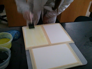 After making those solutions you then combine them together and have approximately an hour to work with the solutions. By coating the print papers with one coat of the combined solution and allowing to dry you can prepare a page for taking an image.
